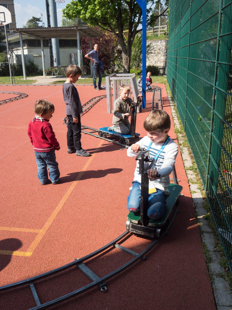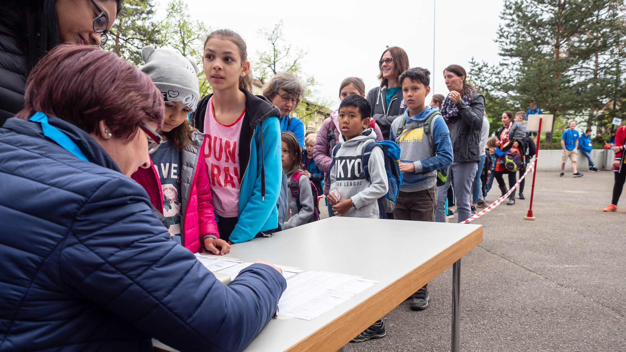 Zum Abschluss am Samstag waren auch Eltern und jüngere Geschwister in die Aula des Wasserstelzenschulhauses eingeladen. Das Programm war gut besucht und auf den von der Sonne beschienenen Pausenplätzen wimmelte es von Kindern und Erwachsenen. Dort konnte man sich austoben auf Hüpfburgen, der Seilbahn und viele weiteren Attraktionen. Da waren dann auch die Verpflegungsstände eine willkommene Abwechslung. Der Erlös aus den Verpflegungsständen wird einem Schulprojekt in Cochabamba, Bolivien und einem Kinderprojekt der Heilsarmee in Basel zur Verfügung gestellt. Punkt 14 Uhr endete die KIWO mit dem beliebten KIWO-Rap.