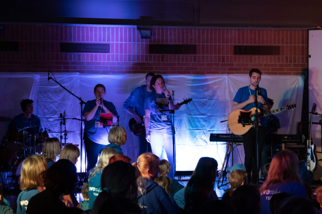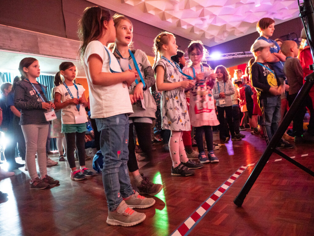 Zum Abschluss am Samstag waren auch Eltern und jüngere Geschwister im Wasserstelzen eingeladen. Das Programm in der Aula war gut besucht und auf den Pausenplätzen wuselten viele Kinder und Erwachsene herum, um sich bei den Verpflegungsständen etwas Leckeres zu kaufen und damit zwei Kinderprojekte in Tansania und Riehen zu unterstützen oder sich auf den Hüpfburgen und der Seilbahn der Jungschi auszutoben, sich schminken zu lassen usw.